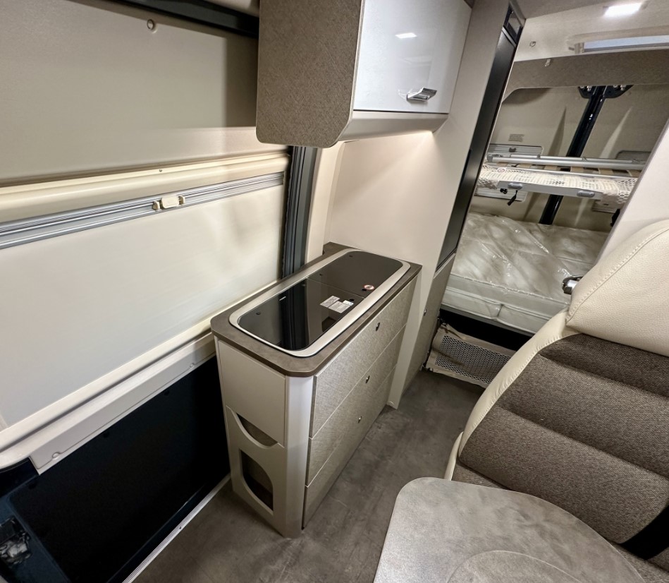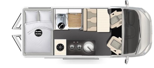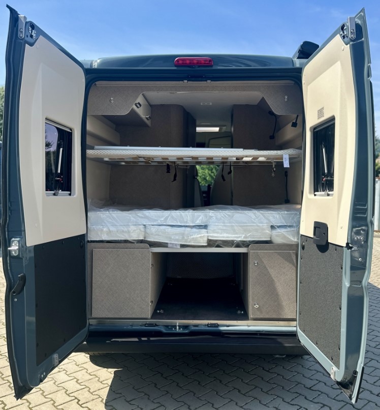 Vzadu lze dle vašeho přání připravit buď velké jednolůžko typu „letiště“, nebo dvě oddělené postele. V přední části vozu se nachází prostorné sezení vhodné pro společné trávení času u jídla nebo zábavy.