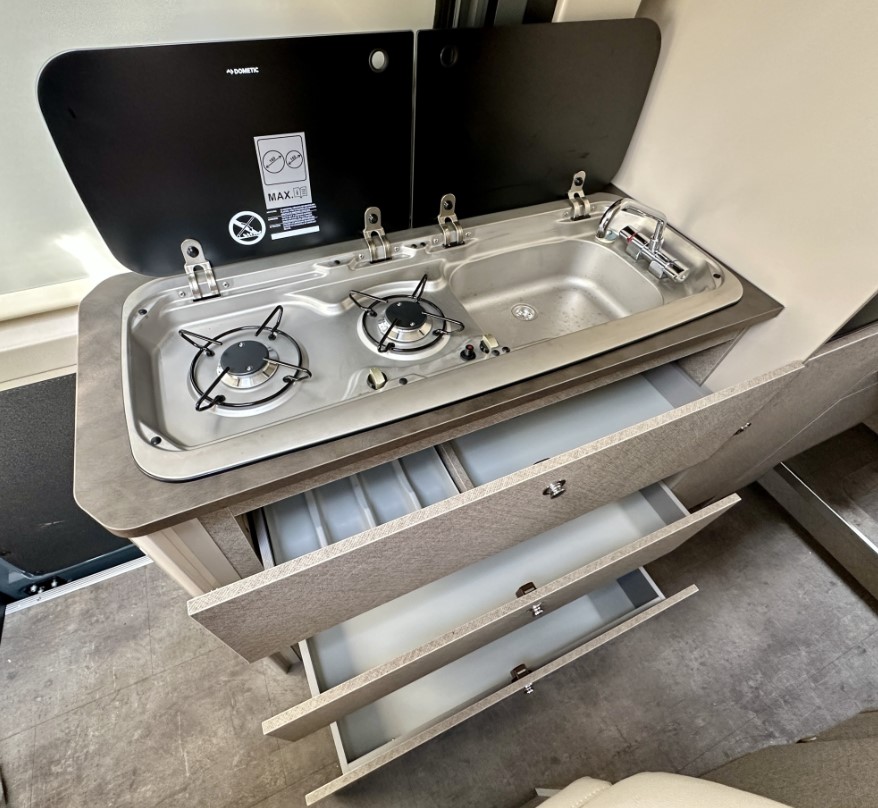 Vozidlo nabízí opravdu velkorysý úložný prostor. Uvnitř vozu najdete mnoho prakticky rozmístěných skříněk a přihrádek pro osobní věci, potraviny i vybavení na cesty.